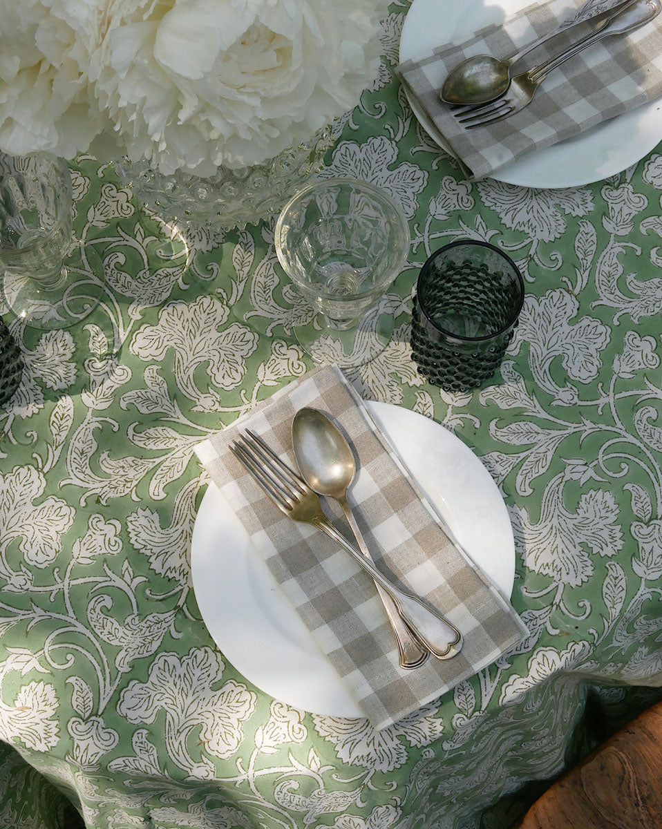 Blockprint Tischdecke "Dahlia" in GrünBlockprint Tischdecke "Dahlia" in Grün