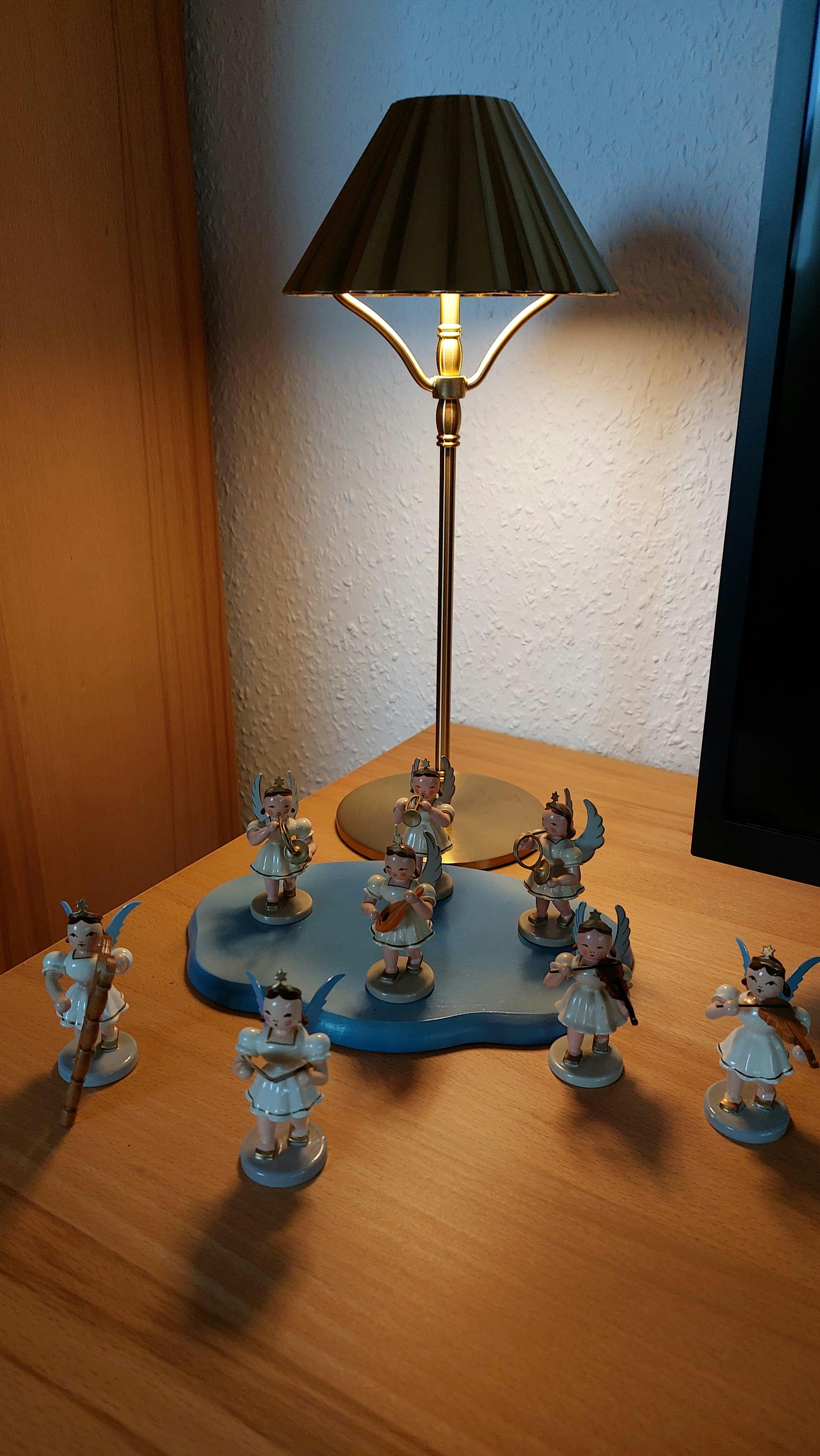 Der leicht gefaltete Schirm und der gebogene Übergang vom Fuß erinnern an Bibliothekslampen. Die Leuchte lässt sich besonders schön mit Kerzenhaltern aus Messing kombinieren und spendet ein angenehmes warmes Licht.